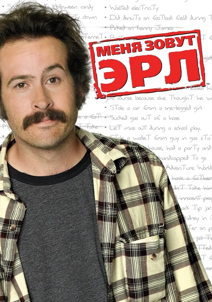 Эрл — мелкий жулик и лентяй из тихого американского городка, привыкший жить по принципу «как-нибудь пронесёт». Когда удача внезапно оборачивается против него, он задумывается о том, что мир платит той же монетой, и решает начать с чистого листа — точнее, со списка. В тетрадке он фиксирует все обиды и неблаговидные поступки, допущенные за годы бездумной жизни, и ставит цель по одному вычёркивать их, принося извинения, компенсируя ущерб и иногда — спасая положения, которые сам же когда-то испортил. В напарниках у него простодушный брат Рэнди, темпераментная бывшая жена Джой, загадочный сосед Дарнелл и горничная Каталина. Каждый новый пункт оборачивается непредсказуемым приключением: где-то нужно вернуть украденное, где-то — научиться слышать людей. Наблюдать, как герой спотыкается, шутит и всё же взрослеет, — именно за этим хочется следить из серии в серию.Меня зовут Эрл — все сезоны и серии онлайн